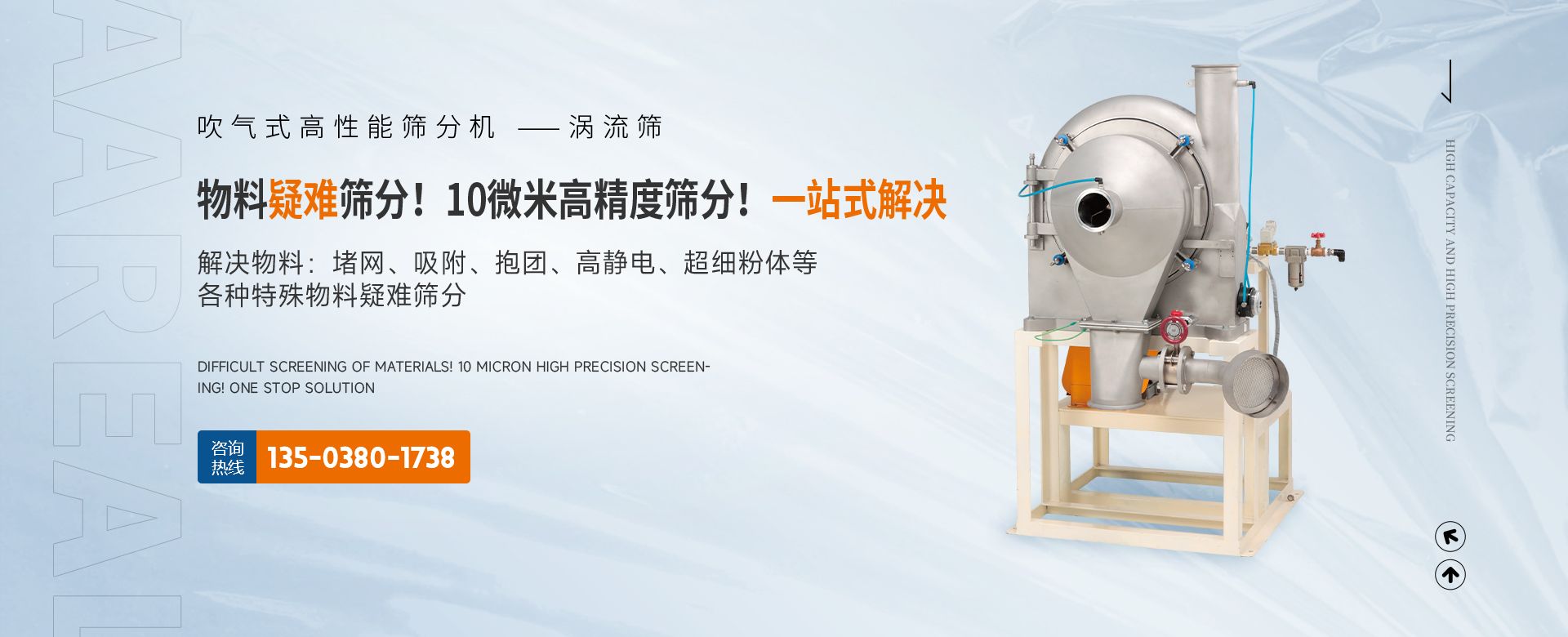 阿 瑞 爾(AAREAL)? 是從事篩分·過濾設備設計和制造的高新技術企業,擁有先進的生產設備、粉體篩分分析實驗室,在中國廣州市設辦事處。祝賀:新鄉市超大產能精細篩分技術工程中心在阿瑞爾(AAREAL)成立!?。≡诰€大產能篩分和在線動態過濾是阿 瑞 爾(AAREAL)?的產品特點■ 在線大產能篩分,突破了傳統篩分觀念,工業化篩分,實現大產能、高能效篩分。以低故障率、低停機率、低使用成本、高產能、高精度、高能效為您帶來巨大意外收益?!?阿瑞爾(AAREAL)擁有的回轉篩分技術,擁有的近百種篩分解決方案及上千種物料的篩分經驗,會給您展現全新的篩分設備,幫您實現大產能篩分 高精度篩分 疑難篩分。■ 阿瑞爾(AAREAL)的品質保證:阿 瑞 爾(AAREAL)? 是高品質篩分設備制造商高品質是阿 瑞 爾(AAREAL)? 質量準則。優品設備 合理篩分是阿 瑞 爾(AAREAL)?回報客戶的驗收標準。——我們不但擁有先進的生產設備,而且對于每一道工序,每一個細節,我們都要精工細作。對于客戶的每一個細微的問題,我們都要認真解決?!闹谱骱陀眯姆帐俏覀儗蛻舻呢熑?。阿瑞爾(AAREAL)是您成功道路上值得信賴的、合作伙伴,以良好的質量、經驗和服務享譽多個國家,確保您安心地選擇每一件產品,阿瑞爾(AAREAL)竭誠與國內外商家雙贏合作,共同發展,共創輝煌!阿瑞爾(AAREAL)——您正確的選擇。